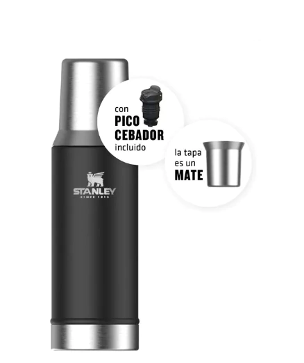 El mate es una bebida muy especial en Argentina, y para mejorar tu experiencia de matear, Stanley ha creado el Termo Stanley Mate System Classic 800 ml, un compañero ideal para el mate. Con tecnología exclusiva, este termo cuenta con un tapón de altísima precisión que permite verter el agua directamente en el punto deseado para una cebada perfecta y con fluido continuo. La tapa de acero inoxidable se convierte en un mate para que puedas disfrutar de la bebida en cualquier lugar. Además, el Termo Stanley Mate System mantiene tu agua a la temperatura ideal para que puedas disfrutar de tu mate caliente por más tiempo. Ya sea que lo disfrutes solo o en compañía, el Termo Mate System Classic 800 ml tiene la capacidad de transformar tu momento de mate en algo legendario.
